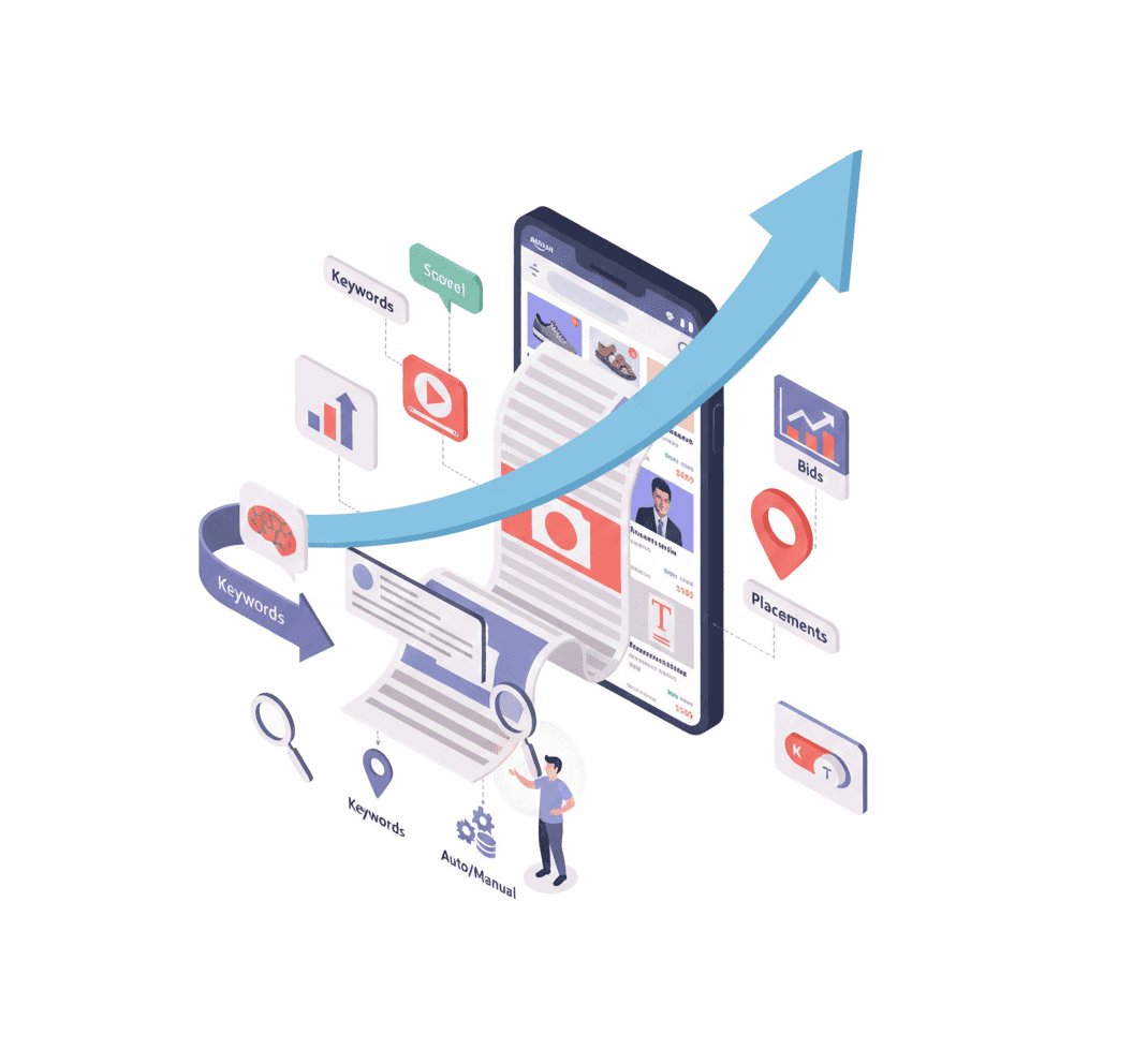 We begin with Amazon keyword research that focuses on real shopper intent, not just broad lists of terms. By analyzing search behavior, competitor patterns, and converting queries, we identify keywords that are more likely to drive sales. This intent mapping helps your ads target the right searches from the start, making every click more meaningful.