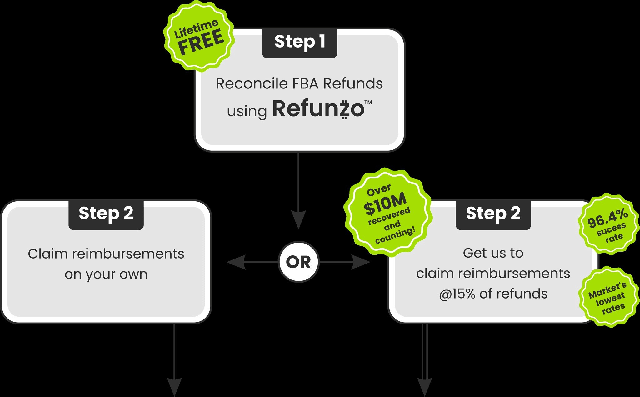 Refunzo has a 96.4% success rate and helps sellers recover lost funds with minimal effort, allowing them to focus on growing their business.